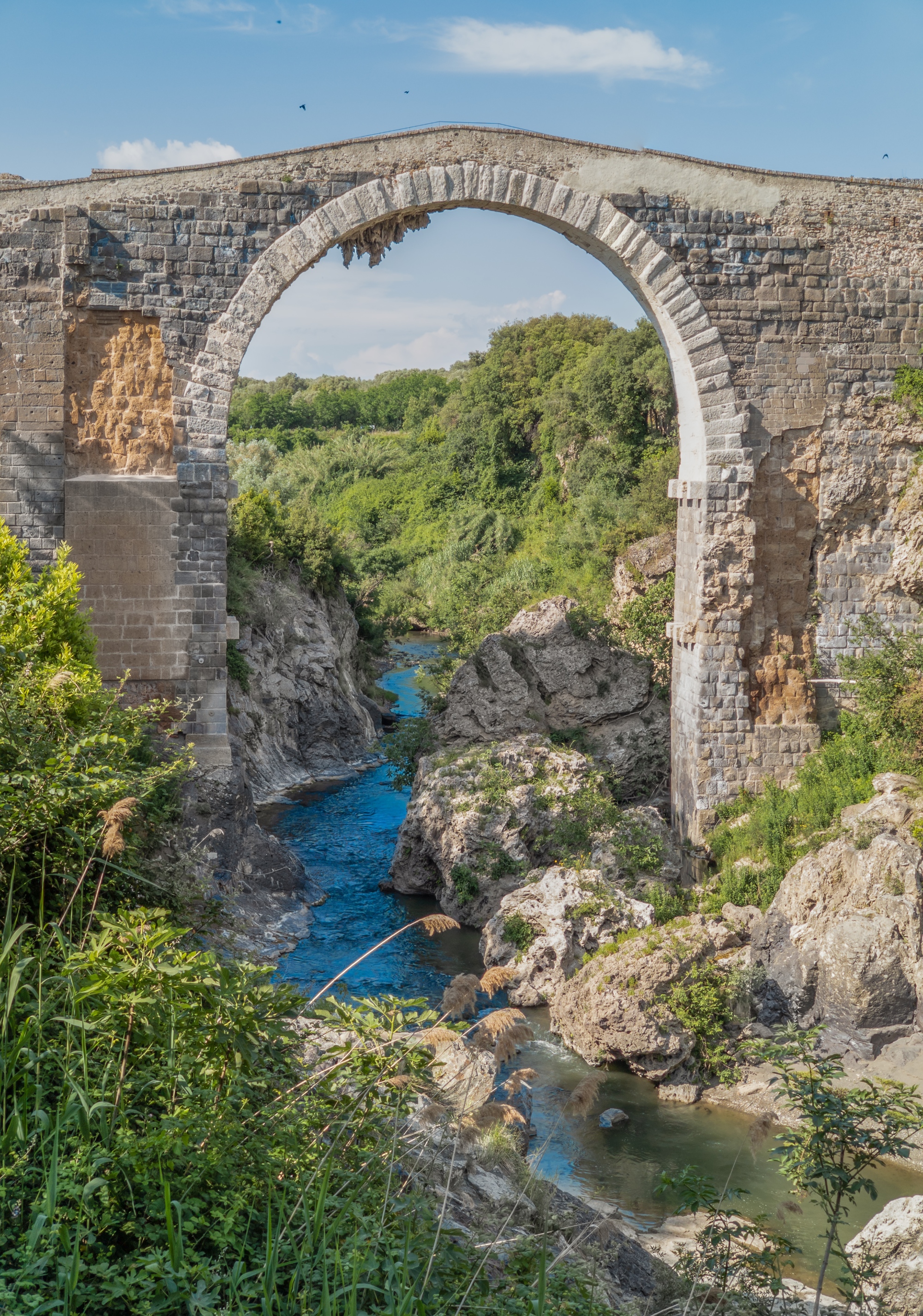 Attraversando il Ponte del Diavolo, fermati un attimo e osserva la valle del Fiora: qui il tempo sembra sospeso e la storia scolpita nelle rocce accompagna il cammino.